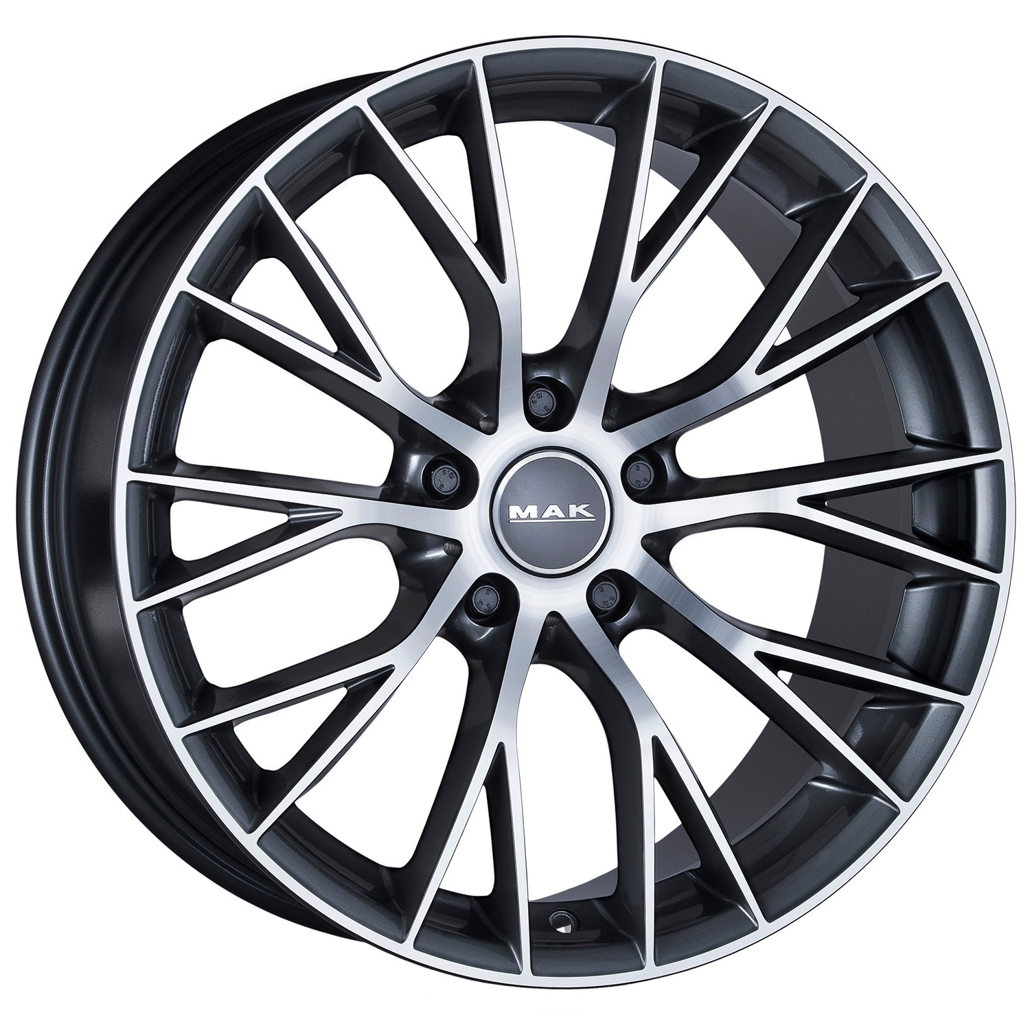 Model MAK Munchen to połączenie dopracowanej stylistyki i nowoczesnej technologii, które tworzą felgę wyróżniającą się zarówno wyglądem, jak i trwałością. Jej wieloramienny wzór typu mesh, w którym ramiona układają się w charakterystyczny kształt litery „Y” (często określany jako „rogi jelenia”), nadaje pojazdowi prestiżowego i dynamicznego charakteru. Efekt wizualny potęguje elegancka kolorystyka Gun Met-Mirror Face, łącząca grafitową powłokę lakierniczą z polerowanym frontem, co sprawia, że felga doskonale podkreśla linię nadwozia i przyciąga wzrok w każdych warunkach oświetleniowych.